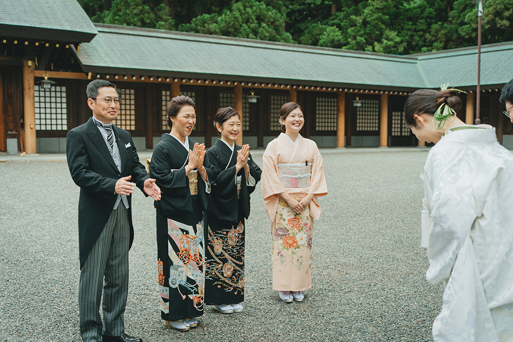 厳かな空気に包まれた神宮だからこそ ご家族の姿もいっそう凛として美しく